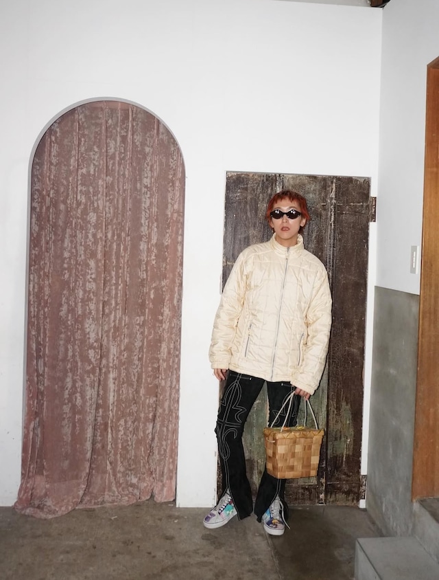 薄い中綿入りです ベトナム製だそうです 素材 表地cotton polyester サイズ ウエスト 39.5cm 股上 29cm 前あて丈 28cm 股下 57cmワタリ幅 29cm裾幅 23cm