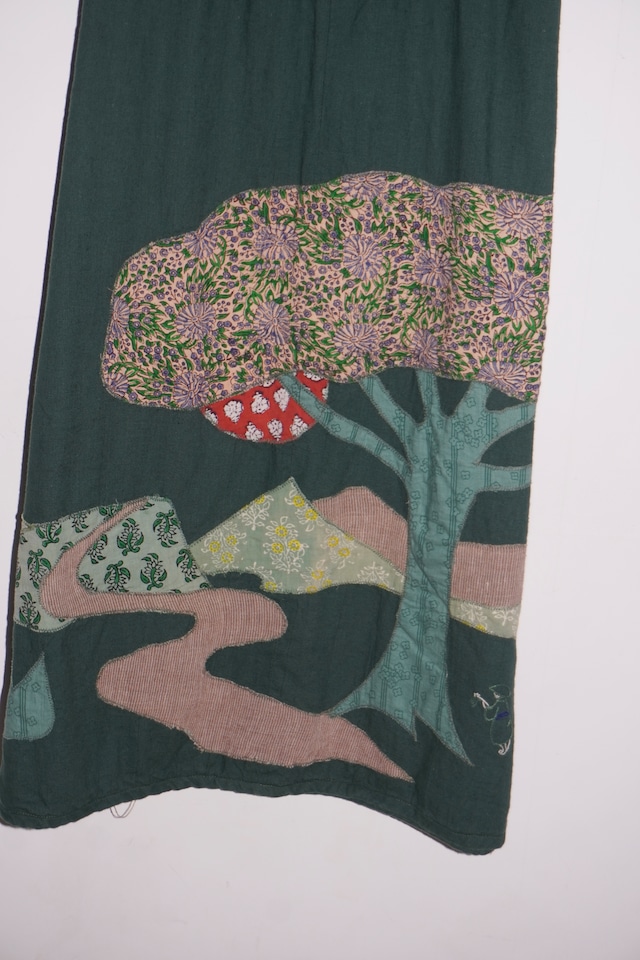 木の柄 素材 cotton 100% サイズ ウエスト 31cm 着丈 103cm 裾幅 76cm