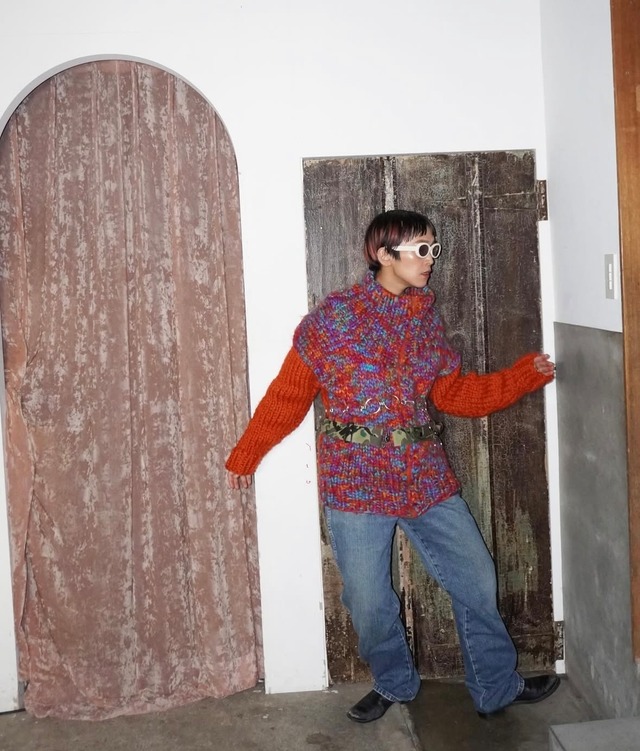 カラフルでポップで可愛い 少し重め 素材 wool サイズ 身幅 49cm着丈 62cm肩幅 64cm袖丈 54cm