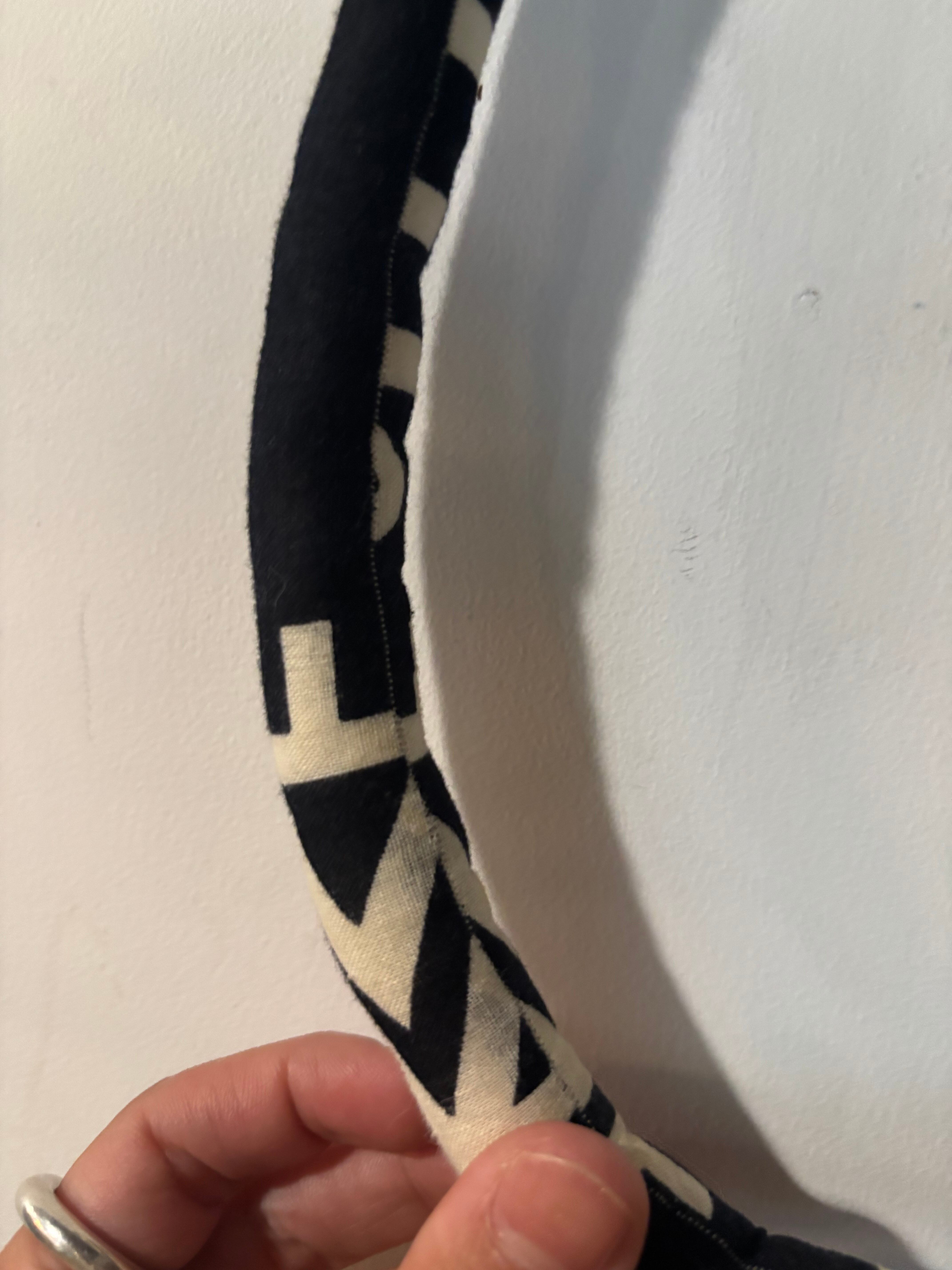 アジャスターなしの 上から被るネックレス 中に綿みたいなのが詰まっていてとっても軽い 白シャツにこのネックレスとか良さそうですね
