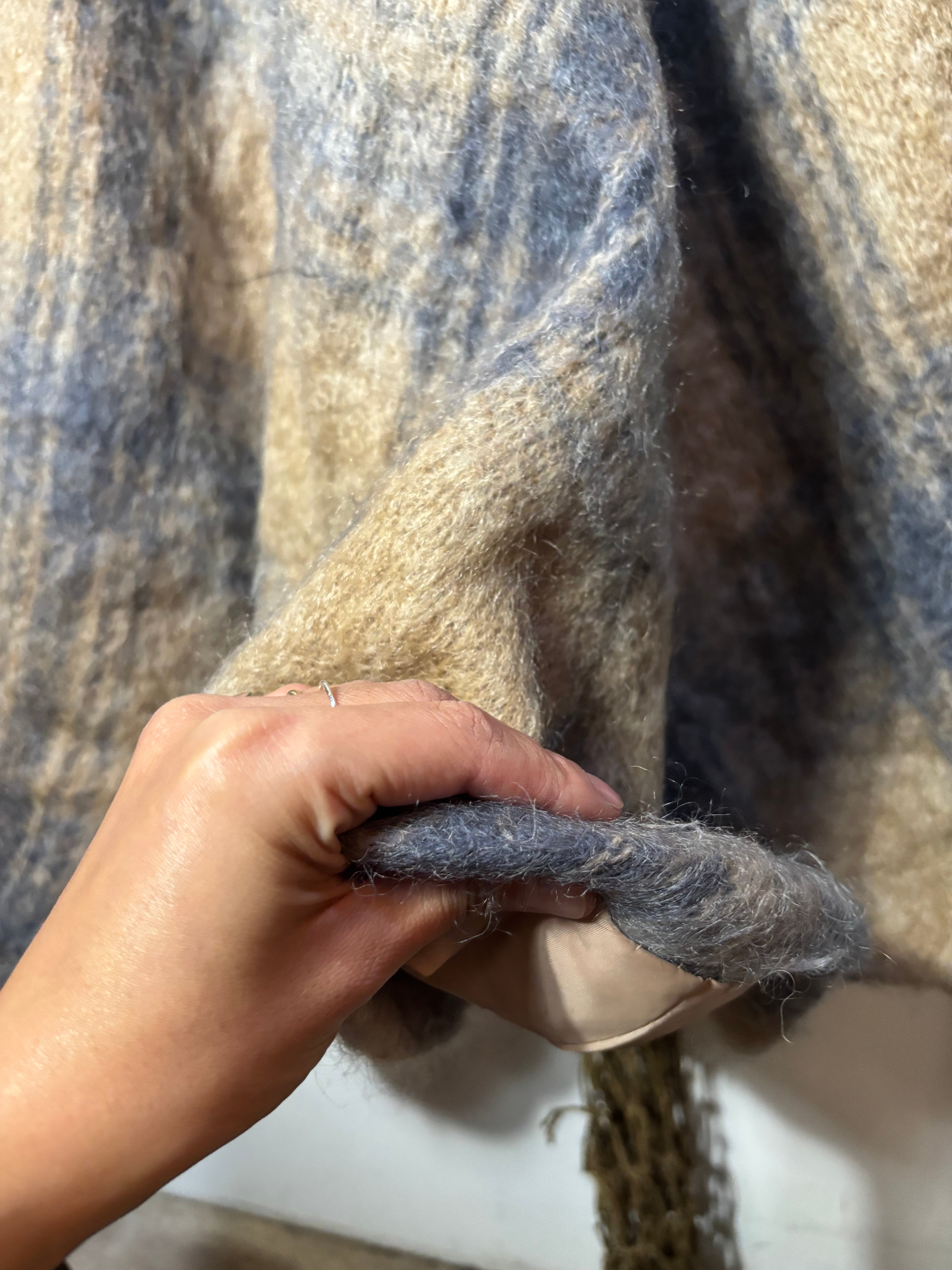裾に向かって広がるシルエットでたっぷりとしたボリュームが可愛いコートです。裏地は裾までついておりチクチクしません。
