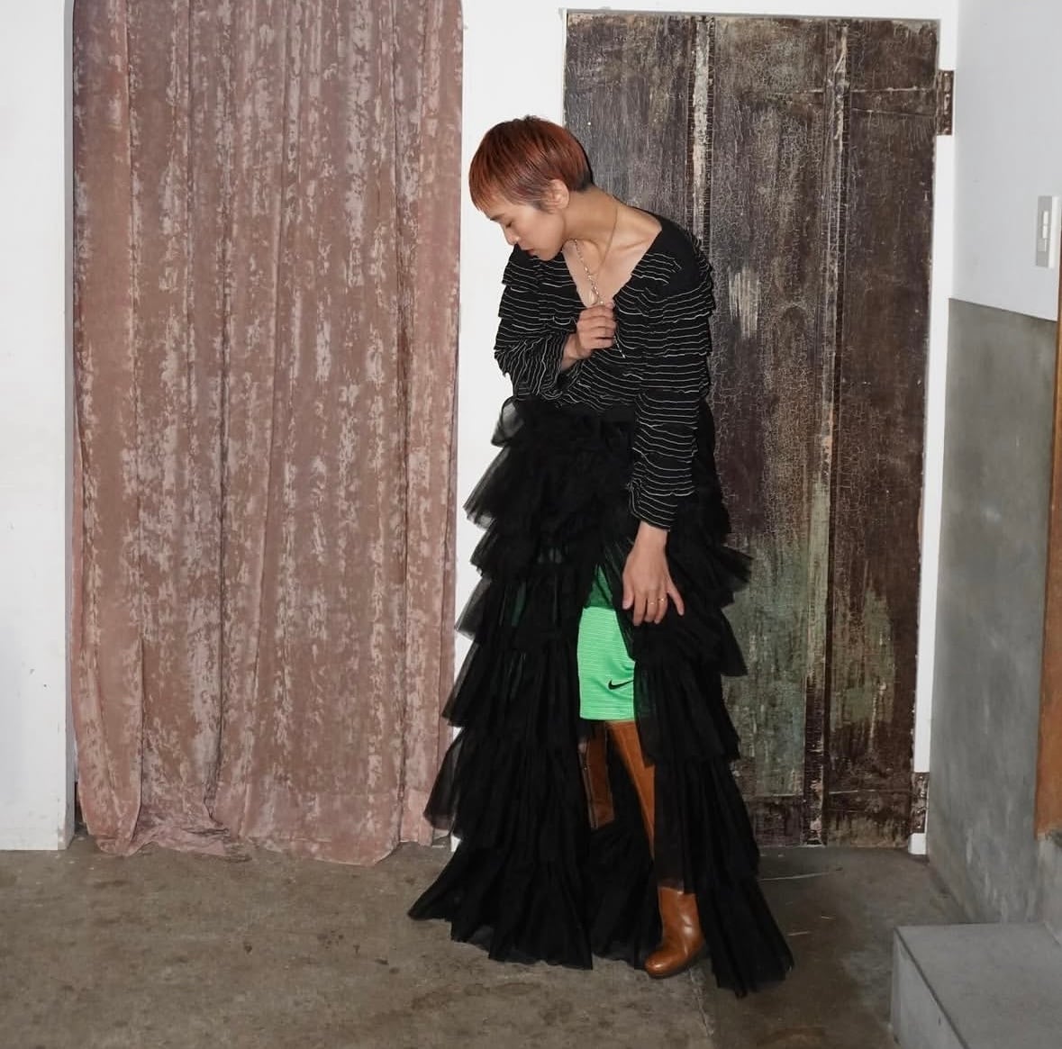 袖までたっぷりフリル