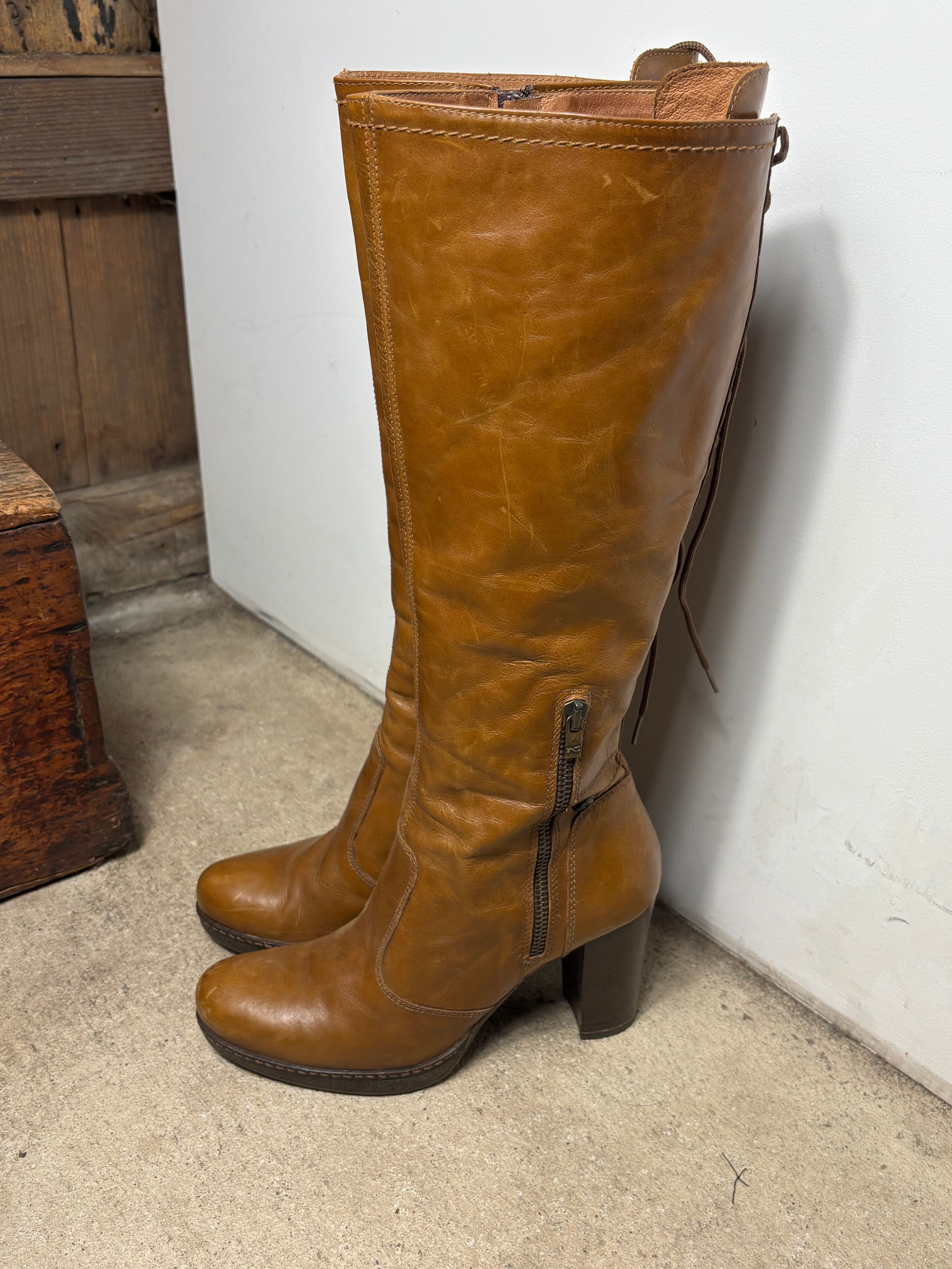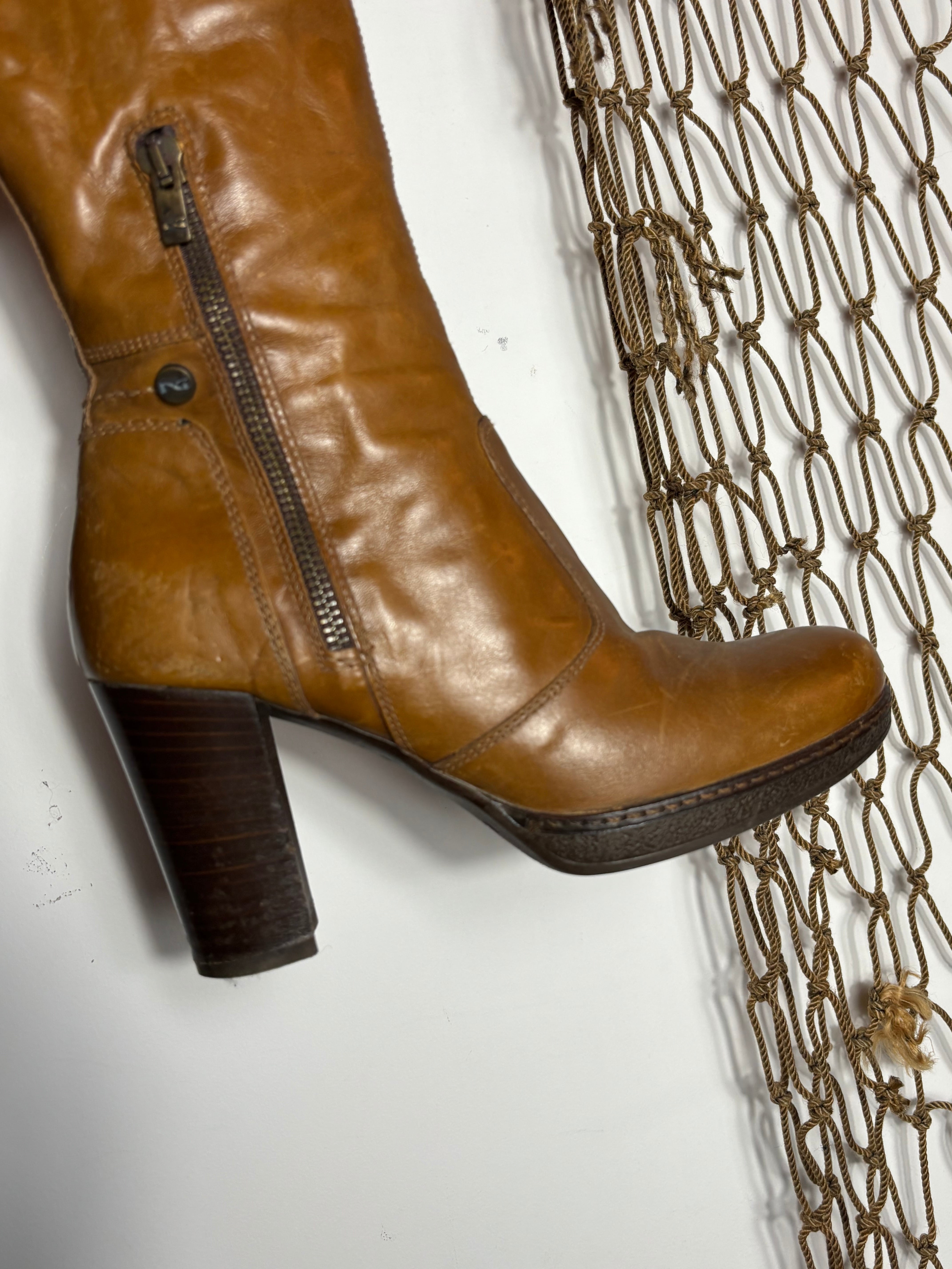 leather long boots