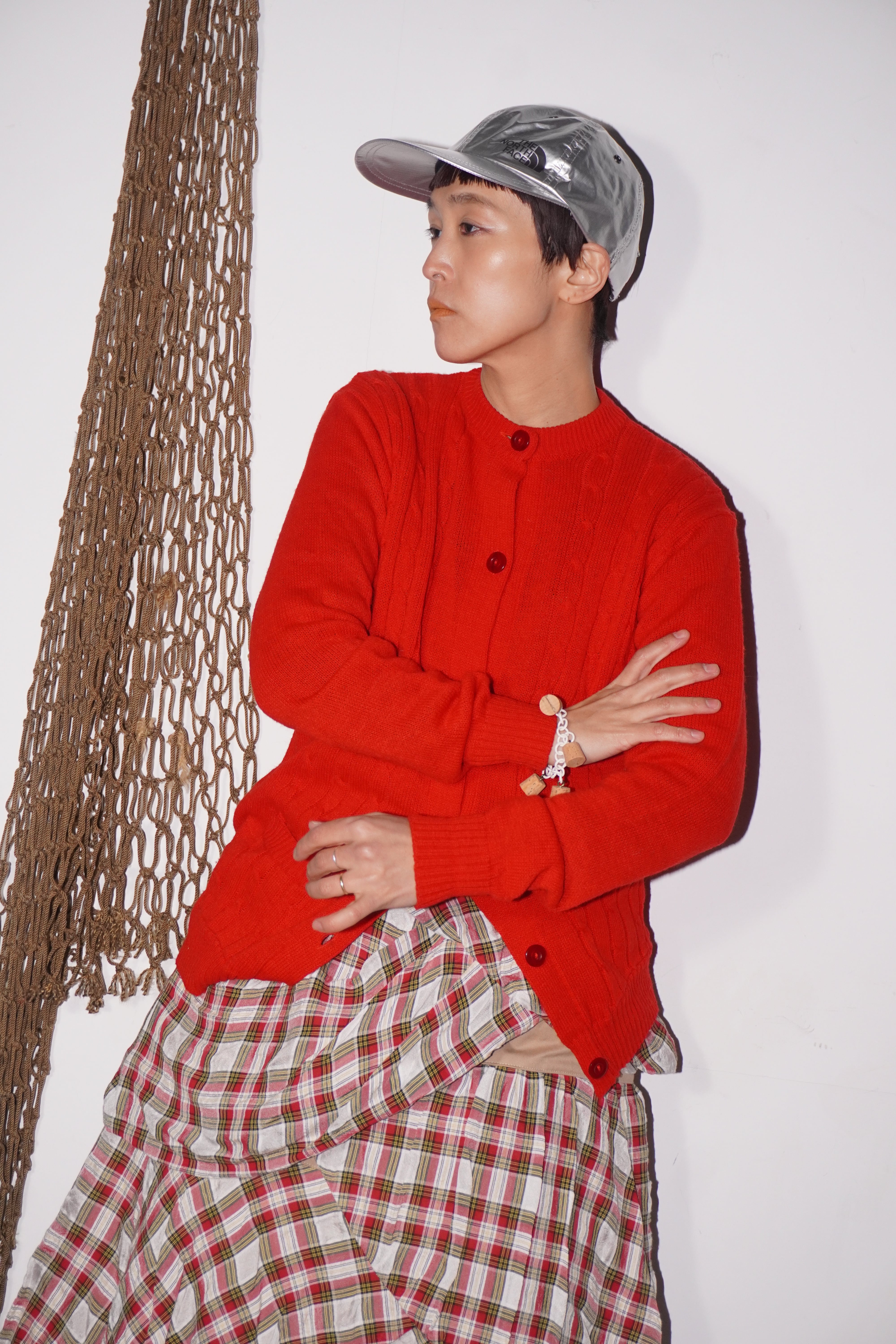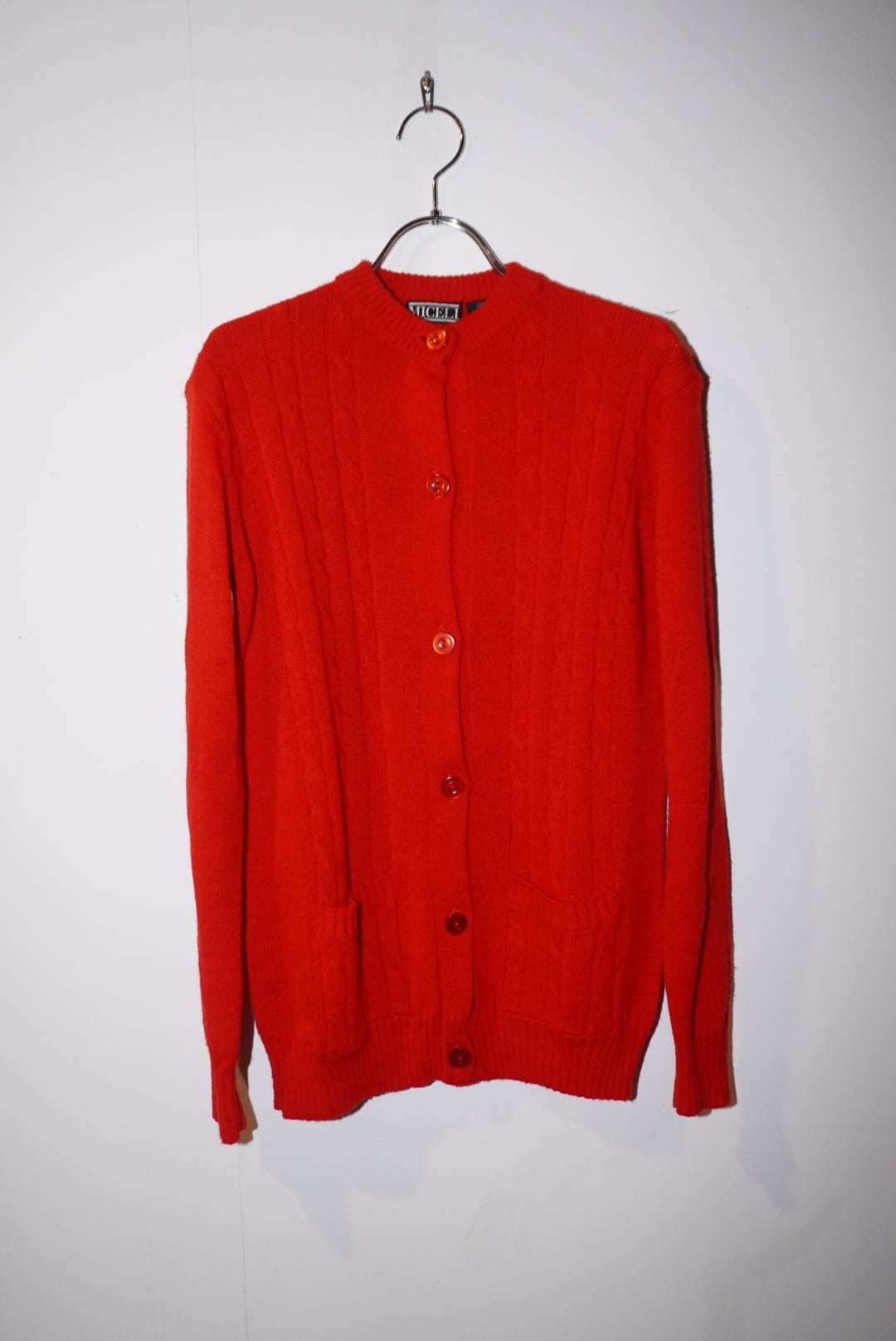 赤のケーブルニット 気持ち程度のポケットも愛おしい サイズ 肩幅 42cm 身幅 46cm 着丈 67cm 袖丈 58.5cm